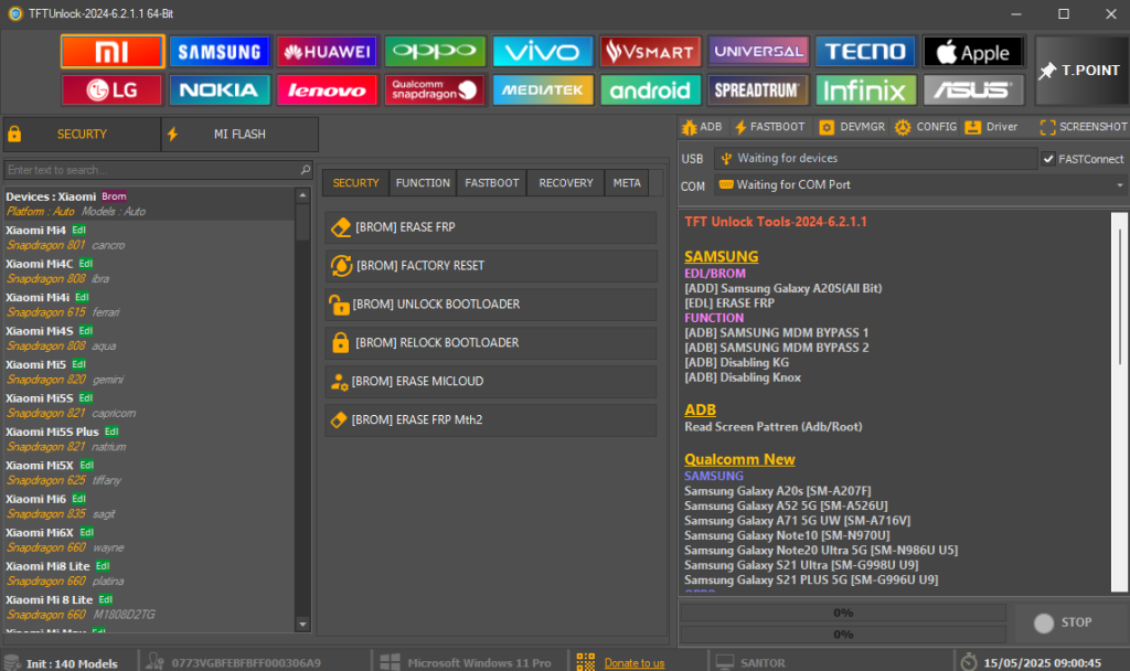 O TFT Unlock Tool é compatível com uma vasta gama de dispositivos das principais fabricantes do mercado:
